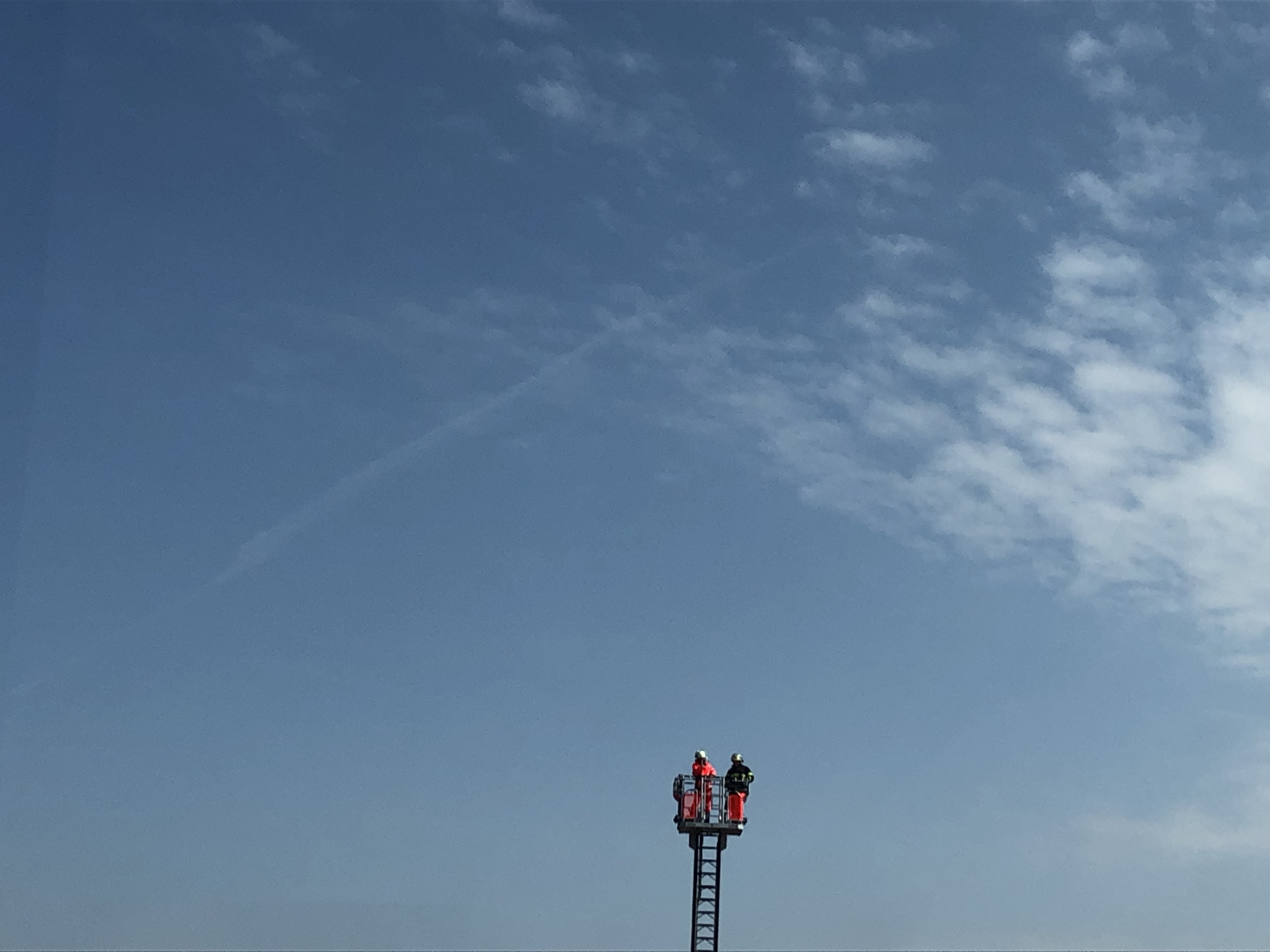Die beiden Mitarbeiter der Bilderberg-Zentrale, die auf dem Foto zu sehen sind, reparieren mal wieder Chemtrails. Das machen sie, damit wir Menschen denken, dass wir denken.