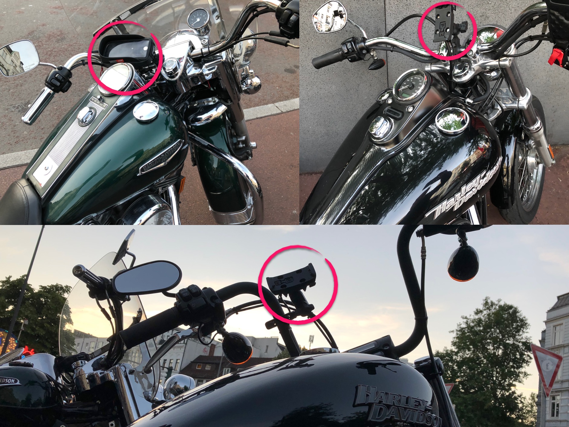 Navigationsgeräte am Harley-Lenker.