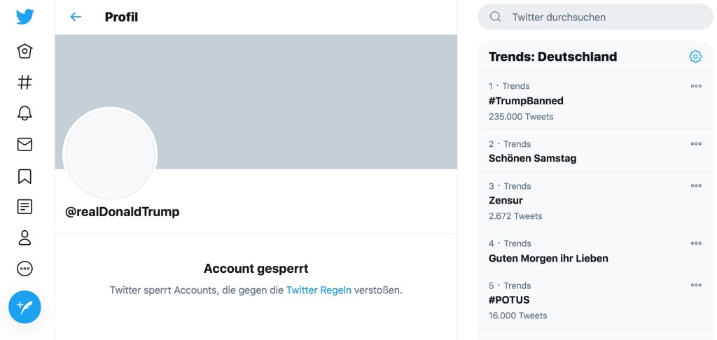Das Privatunternehmen Twitter hat das Privatkonto von Donald Trump gesperrt.